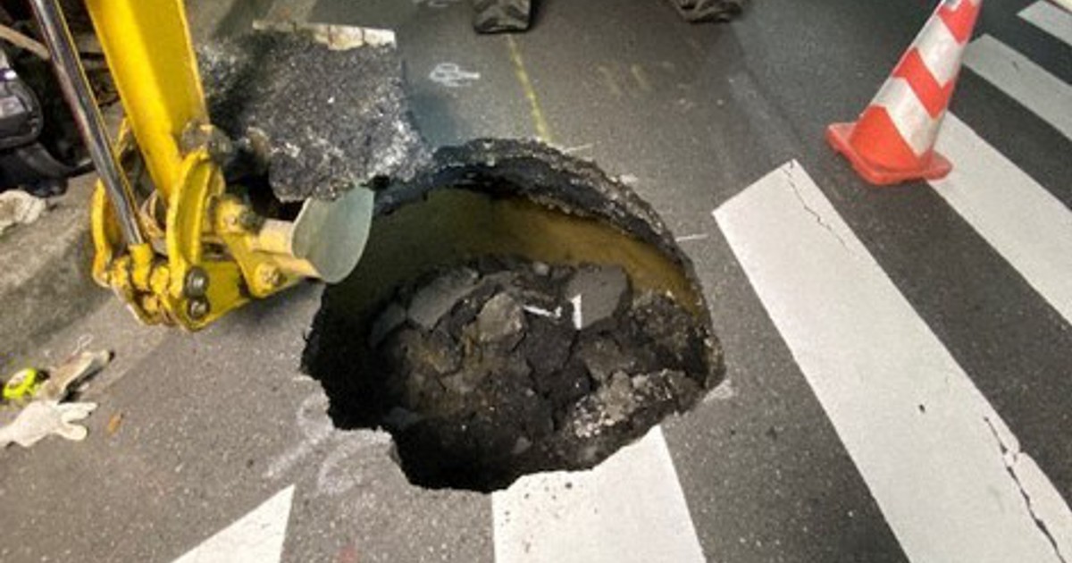 内堀通りで道路陥没 縦横1.5m、横断歩道の一部も けが人なし