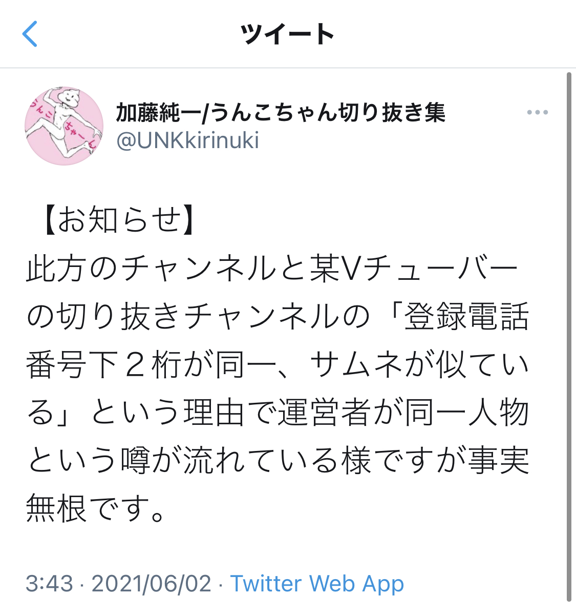 『加藤純一/切り抜き集』チャンネル、これは酷い😱ツイッターで登録してる電話番号の下二桁が同じ、動画の作り方が同じという共通点から同一人物みたい😅数多の切り抜きを潰させておいて浮気、しかもVtuberって😱純くんとの口約束にはなかったかもだけど、心象が悪いのは確か😅こりゃ”ひん”だね😂😂😂 https://t.co/lj1s6u1hpe pic.twitter.com/pA8fBieV0z