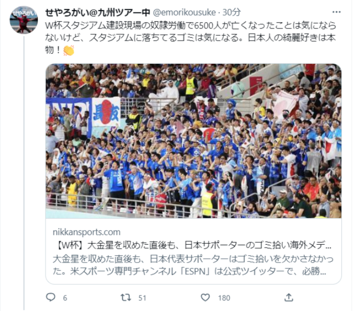日本が勝った、じゃなくドイツが負けたって書くあたりほんま救いようがねぇな